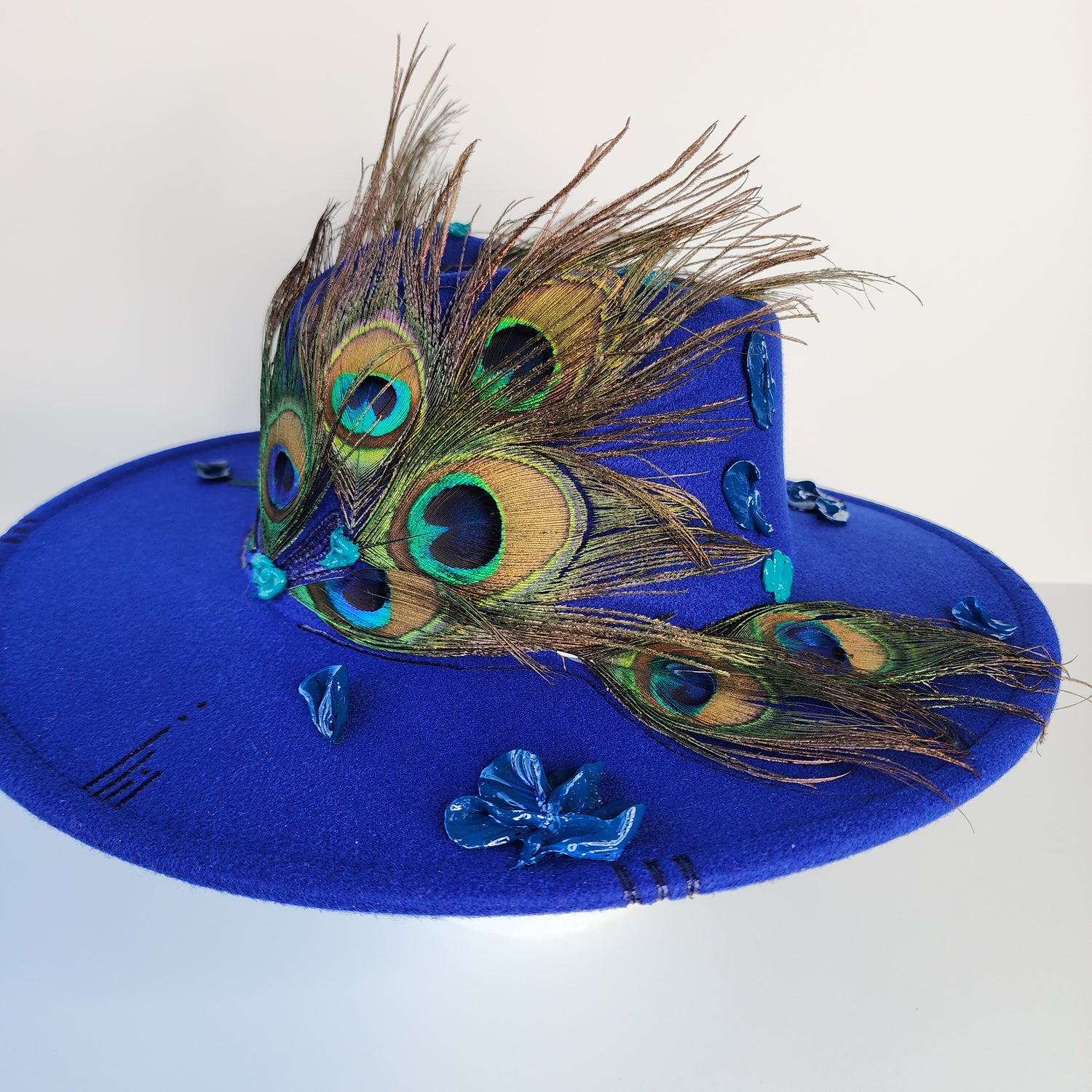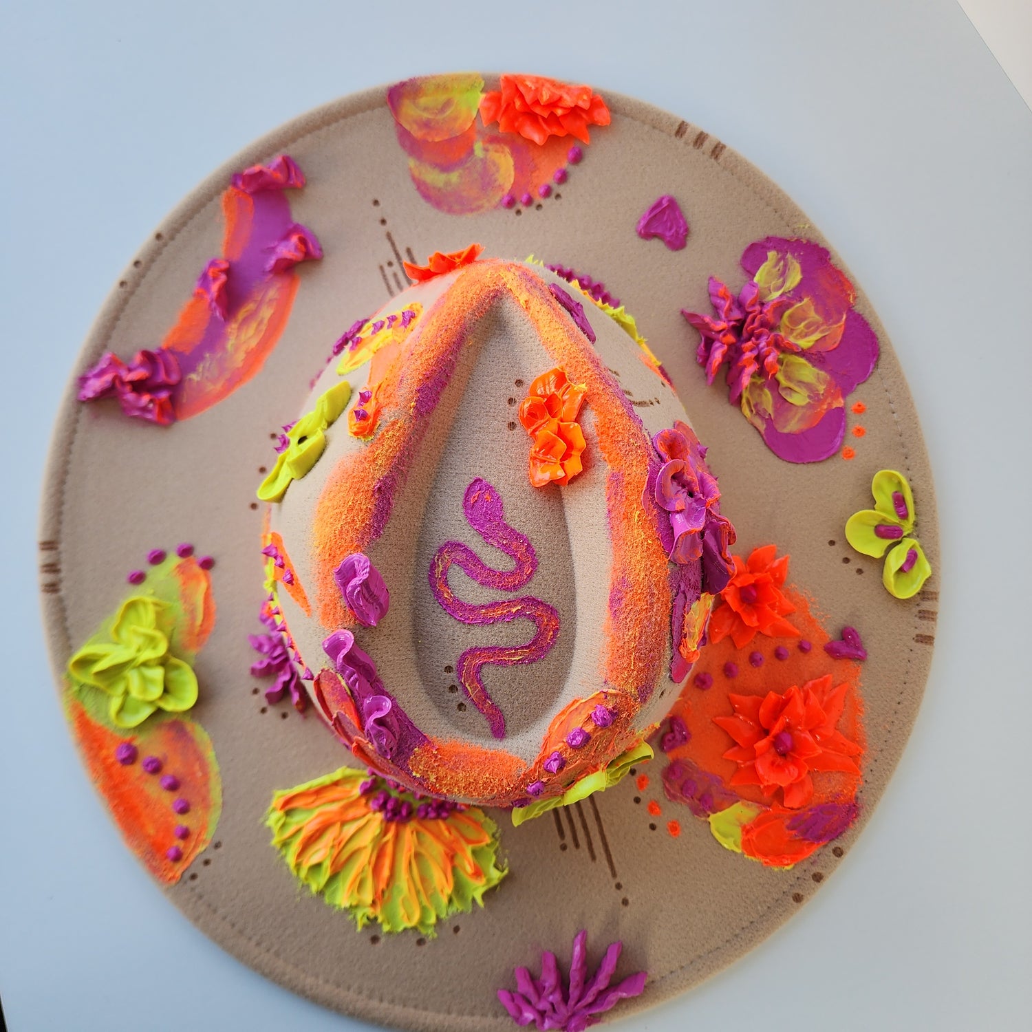 These custom hats feature unique freehand burnt designs around the top brim,...